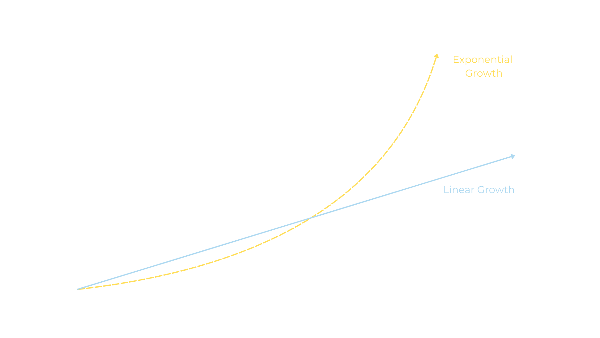 The effect is a constant multiplier that drives a dramatic increase over time, outperforming companies that focus on conventional linear growth.